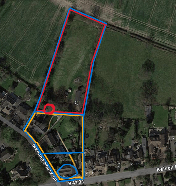 For much of its history, today’s 85 Kelsey Lane was on Meeting House Lane. The site was originally home to a cottage and croft (marked in red on the map) whose history we can trace back to the mid-17th century. The holdings were expanded through Enclosure in 1802 (marked in yellow on the map). Early C18 inventories suggest that the ‘cottage’ had six rooms, three on each floor. In c.1860 a new house was built with access from Kelsey Lane (marked in blue on the map). By 1914, the property was known as Sunnydale.