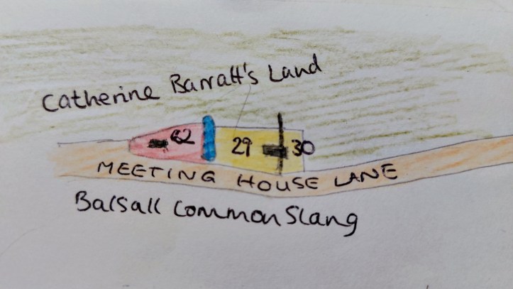 Our first record of the two cottages is in the 1802 Berkswell Enclosure Act, where they are numbered 29 and 30 on the map of ‘old encroachments’ – meaning cottages illegally constructed on common land that had stood for at least 20 years (the cottage next door at no. 62, beyond the pond, was a ‘new encroachment’ less than 20 years old, and belonged to Francis Eaden). The Enclosure Act turned all encroachments into copyhold land of Berkswell Manor, making their occupiers manorial tenants.